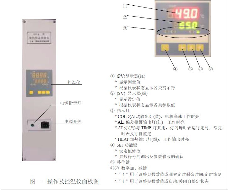 2.1 产品操作面板及控温仪面板布置(见图一);