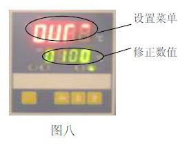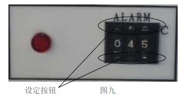 11.2 见图九,用面板上超温设定拨盘的+、— 按钮进行设定所需限温温度。