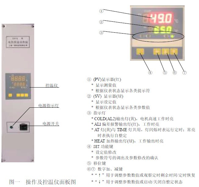2.1 产品操作面板及控温仪面板布置(见图一);